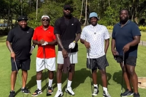 詹姆斯近日在波多黎各度假,他晒出了和几位好友打高尔夫的合影,并写道:“外面实在是太热了🗣️!哈哈”